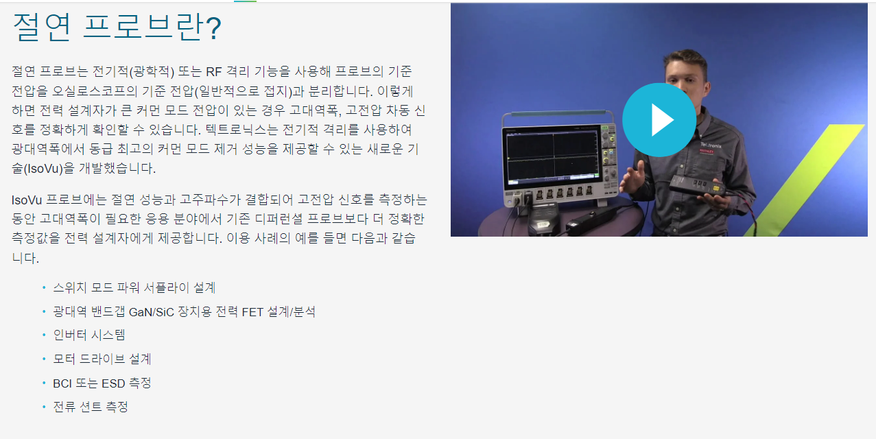 절연되지 않은 프로브가 숨기고 있는 빠른 플로팅 신호를 발견해 보십시오. IsoVu™ 프로브 기술은 광학적 절연 기능을 사용하여 커먼 모드 간섭을 거의 제거합니다. 이를 통해 100V/ns 이상의 속도에서 ±60kV 회전하는 기준 전압에 대해 정확한 차동 측정값을 제공합니다. 당사의 IsoVu 2세대 설계를 사용하면 1/5의 크기로 IsoVu 기술이 지닌 모든 이점을 누릴 수 있습니다.
