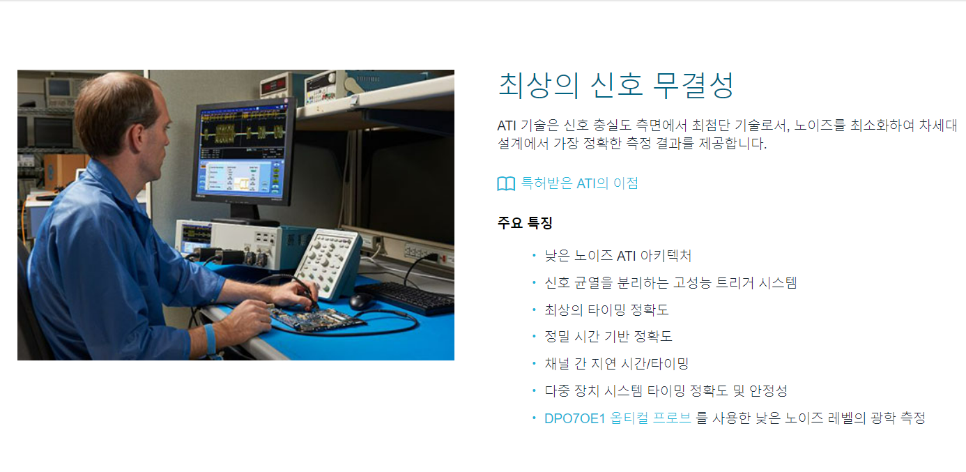 DPO70000SX ATI 고성능 오실로스코프는 업계에서 가장 정확하게 고속 신호 동작을 캡처하여 차세대 설계를 확인, 검증 및 특성화할 수 있습니다. 낮은 노이즈 및 더 높은 충실도로 최대 70GHz 신호를 캡처하여 신호의 진정한 특성을 가장 정확하게 측정할 수 있습니다.