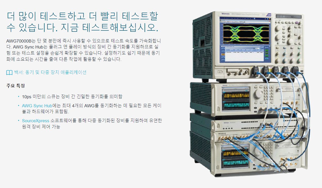 AWG70000B 시리즈 임의 파형 발생기는 샘플링 속도, 신호 충실도 및 파형 메모리 측면에서 최첨단 기능을 제공하므로 복잡한 구성 요소, 시스템 및 실험의 설계, 테스트 및 작동에 적합합니다. 최대 50GS/s의 샘플 속도 및 10비트의 수직 해상도로 이상적이고 왜곡된 "실제" 신호를 쉽게 생성할 수 있는 업계 최고의 신호 자극 솔루션을 제공합니다.