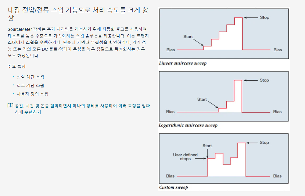 키슬리의 표준 시리즈 2400 소스 측정 장치(SMU) 장비는 4분할 정밀 전압 및 전류 소스/부하를 측정과 함께 제공합니다. 각 SMU 장비는 안정성이 뛰어난 DC 전원과 실제 장비급 6½ Digits 멀티미터입니다. 전원 특성에는 낮은 소음, 정밀도 및 리드백이 포함됩니다. 멀티미터는 높은 반복성을 제공하며 소음이 적습니다.