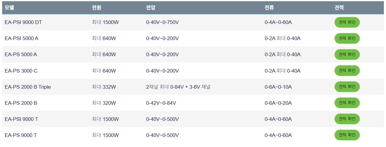 모든 벤치 전원 장비에는 직관적인 제어 및 테스트 설정을 위한 TFT 터치스크린 디스플레이가 탑재되어 있습니다. 사용이 간편한 인터페이스를 통해 테스트를 신속하게 구성하고 장비를 직관적으로 작동할 수 있습니다. EA의 데스크탑 및 타워 형태의 공간 절약형 DC 전원 공급기와 로드는 시장의 대부분 벤치탑 장비에서 흔하지 않은 고급 기능을 갖추고 있으며, 경제적이고 컴팩트한 설계를 자랑합니다.